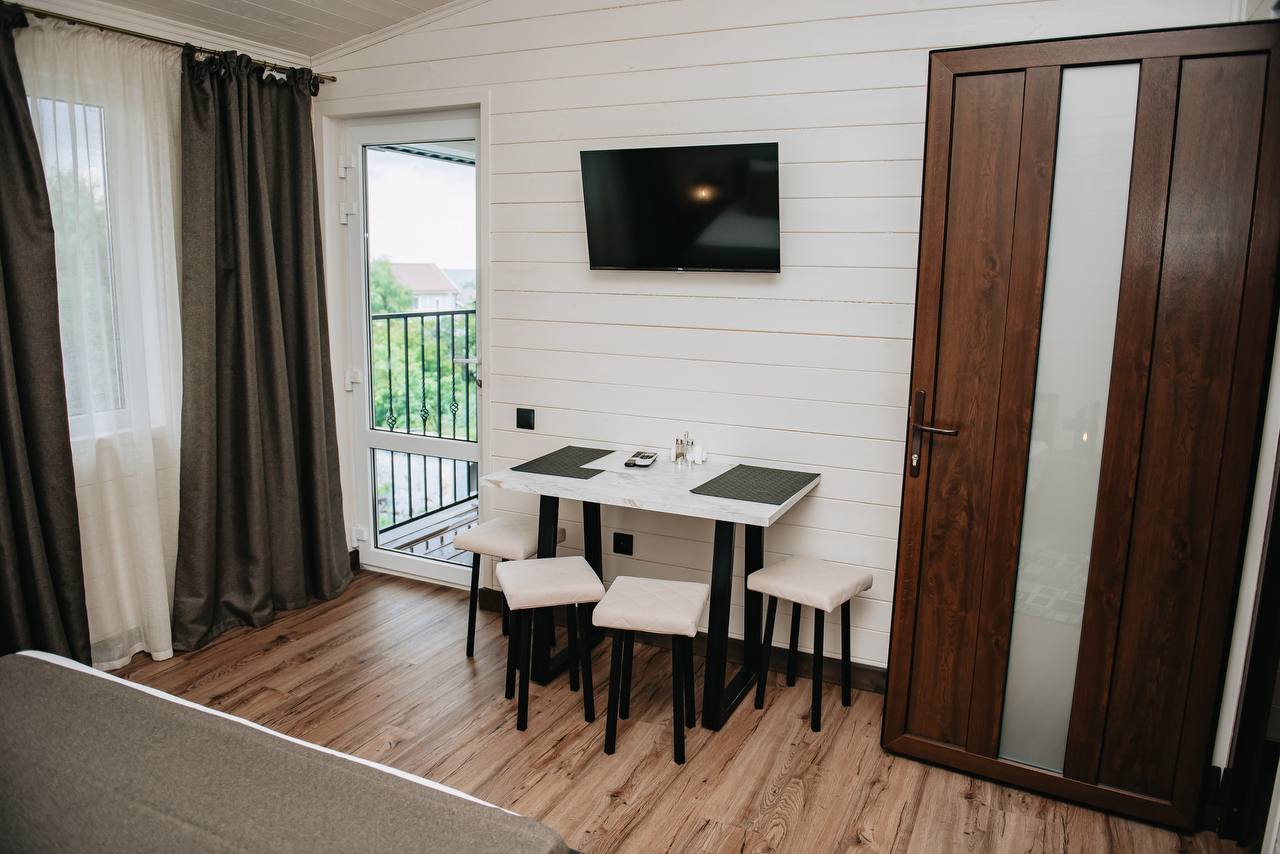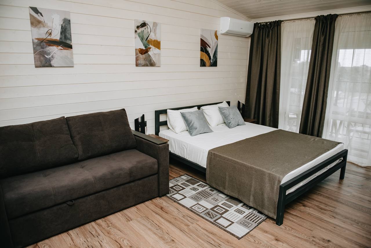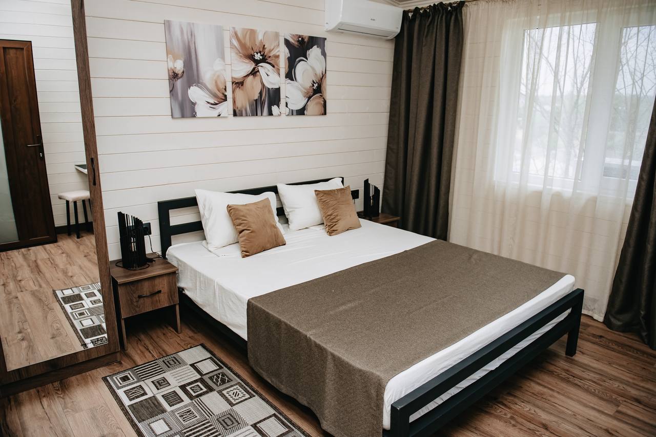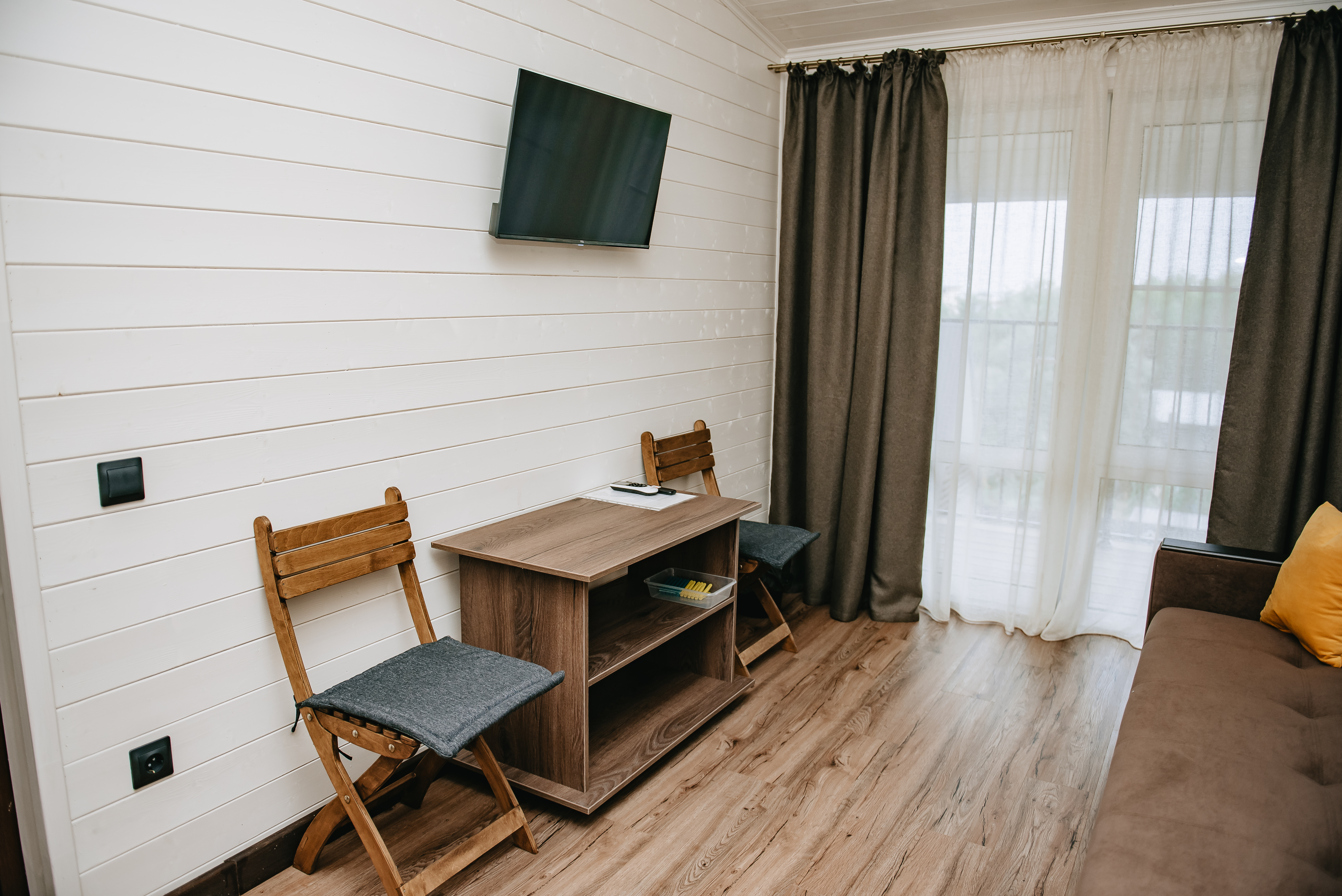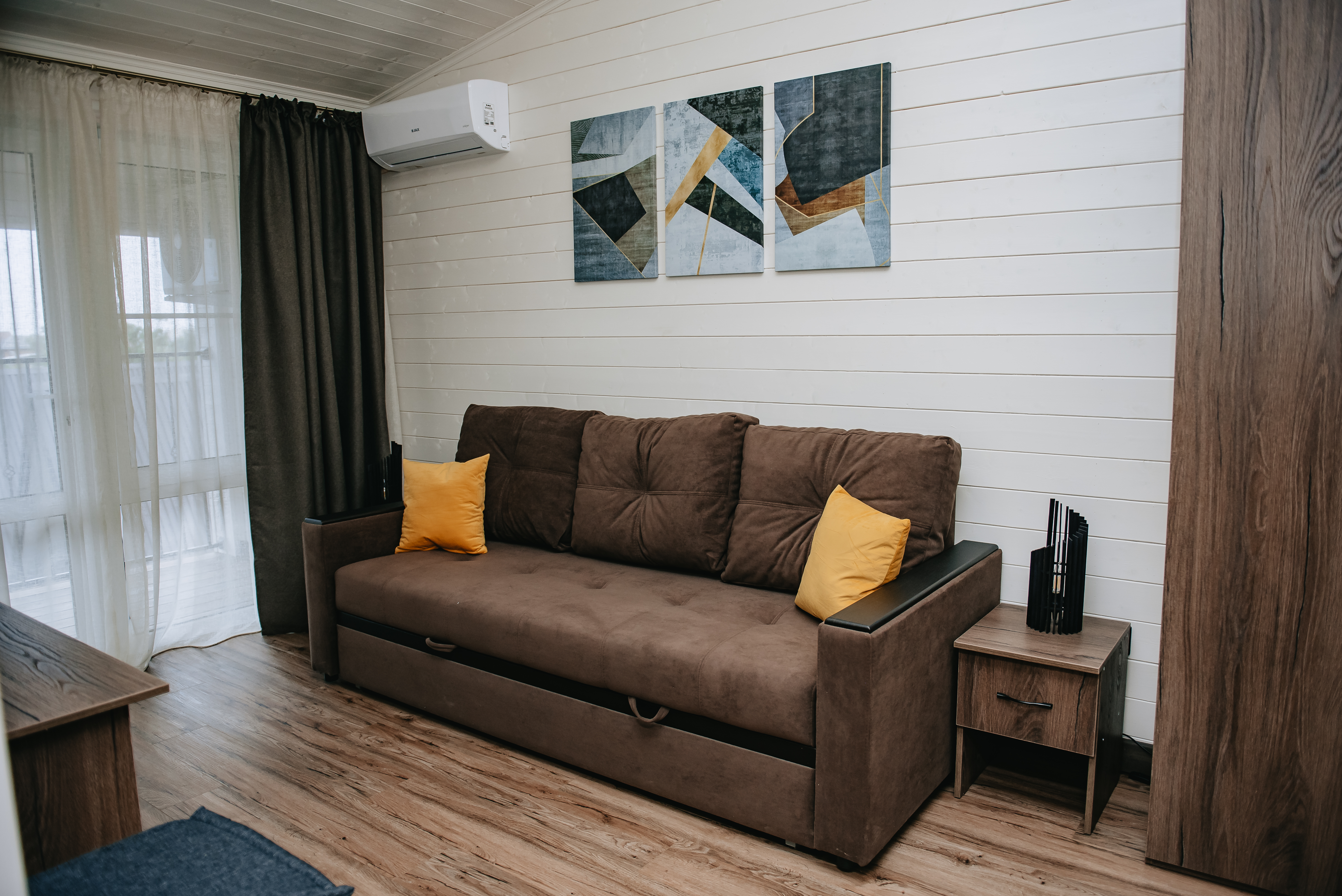 В интерьерах просторных номеров присутствует смешанный стиль Кантри-Лофт. В совокупности, царит атмосфера комфорта, уюта, стиля. Приятный аромат дерева и запах моря позволит Вам отдохнуть и набраться сил и здоровья. Удобные матрасы и подушки, красивое и натуральное постельное белье помогут Вам получить истинное удовольствие